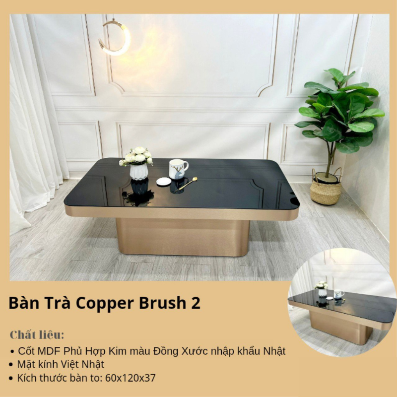Chất Liệu : Gỗ MDF phủ kim màu đồng xước Mặt kính đen. Kích thước 60x120x38